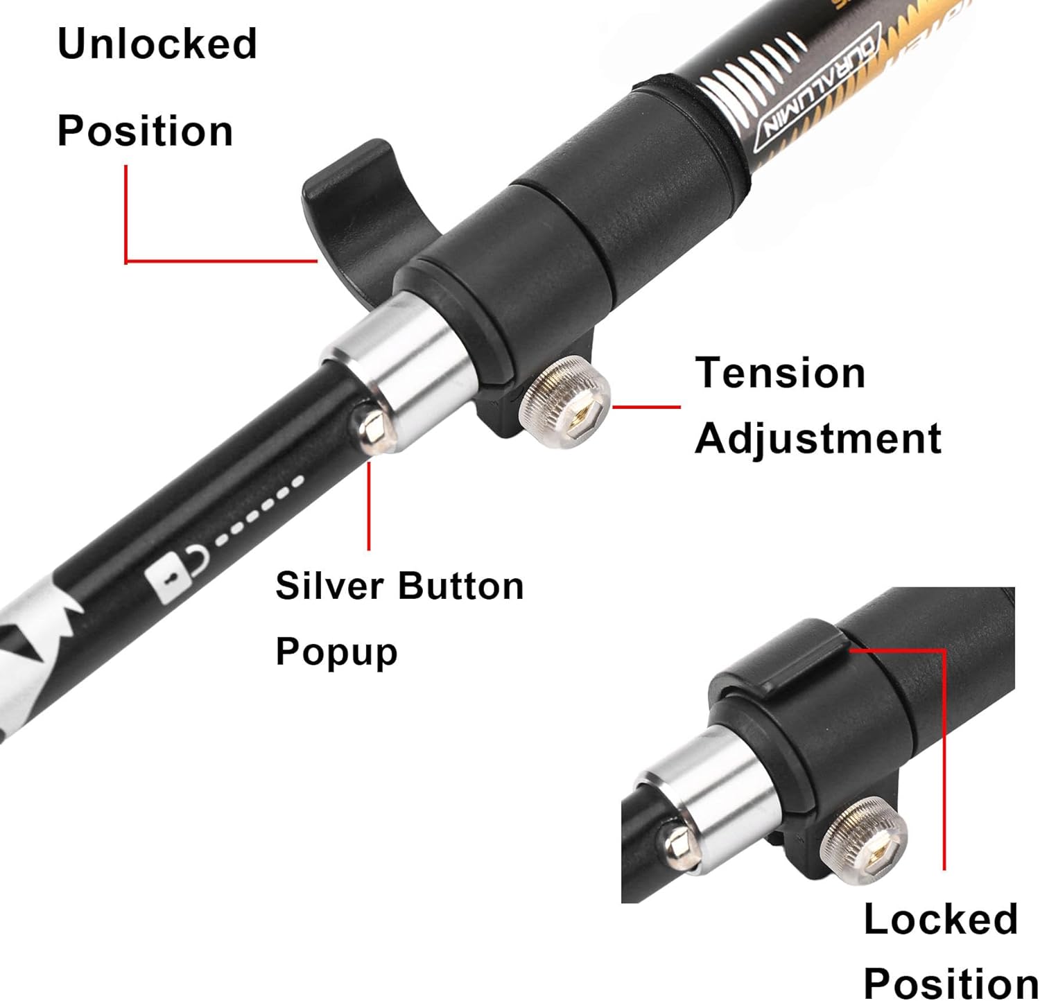 Aluminum Collapsible Ultralight Travel Trekking Hiking Pole for Men and Women